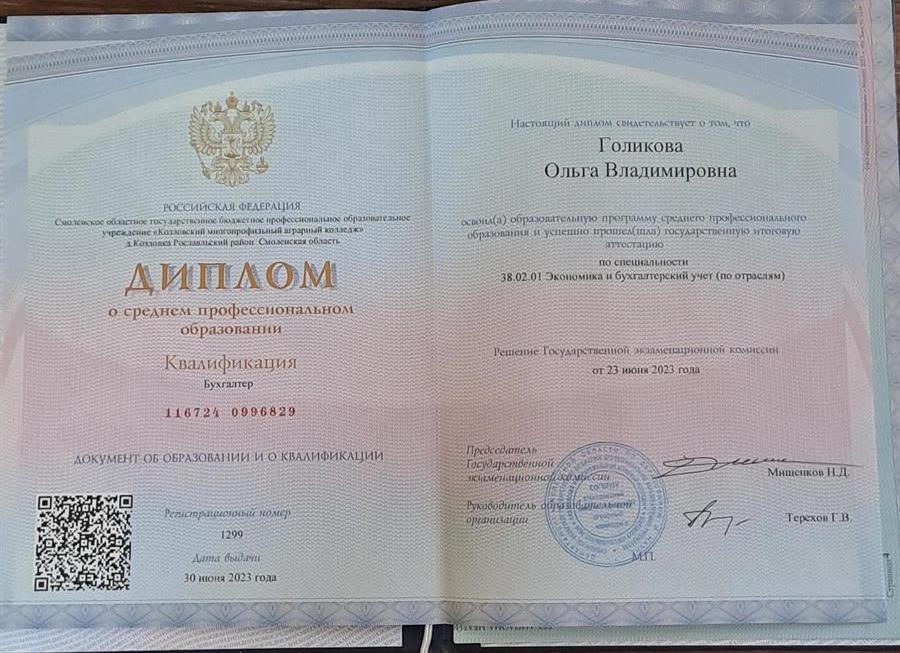 Козловский многопрофильный аграрный колледж (2023 год) - бухгалтер