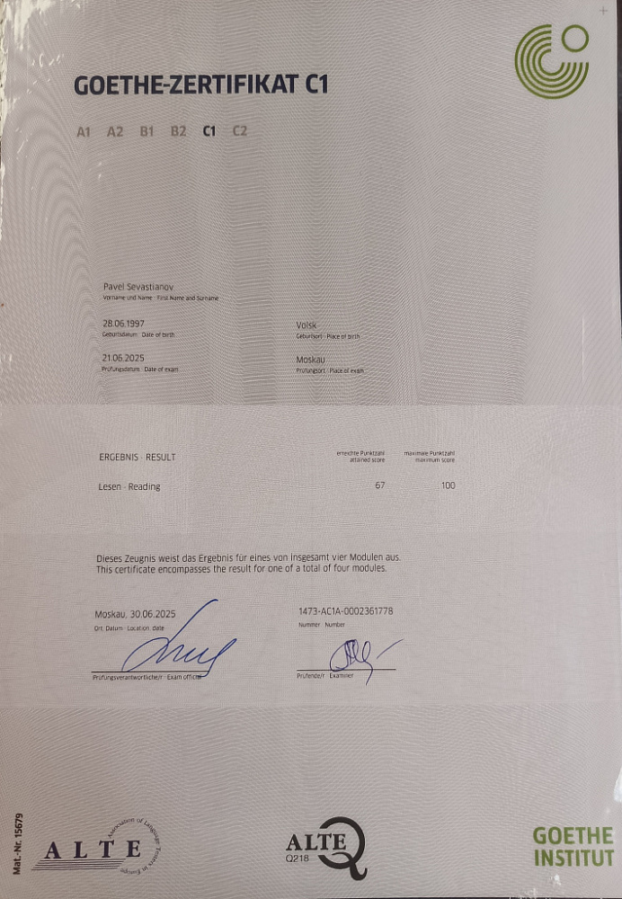 и «разговориться». Все ученики значительно улучшили свою успеваемость и знания, дойдя от начального до среднего и высокого уровней за несколько месяцев занятий. Многие из них сдали такие экзамены как ЕГЭ, ОГЭ, Goethe Zertifikat, DELF, DELE, TELC на высокий балл. В уроках сочетаю проверенные методы и новые подходы, выбираю то, что действительно даёт результат.
